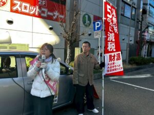 池浜あけみ議員は、平和行政の一般質問や高市政権の軍事一辺倒を批判し、戦争より平和の準備をと訴えました。こんの英子議員は、12月議会で国保税の大幅値上げが可決したことを批判、選挙で公約した消費税減税を前に進めようと訴えました。かきた有一議員は、女性市長になり学校給食半額補助をしたが障害者医療費助成の改悪を批判、中高年男性の問題を訴えました。川口ともこ議員は、マイナ保険証の問題や国会議員定数削減の強行提案を批判。自民と維新の政党交付金を返上させようと訴えました。